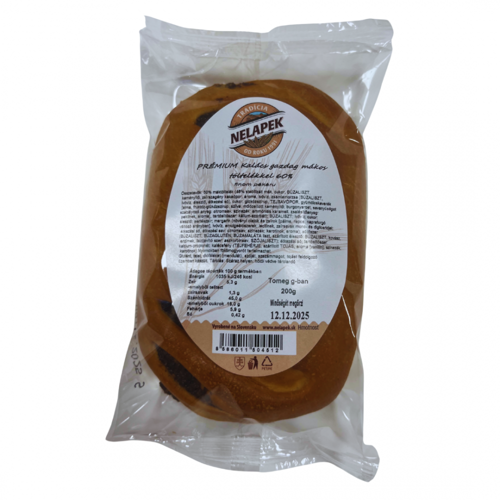 Nelapek prémium kalács gazdag mákos töltelékkel 60% 200 g KICSI