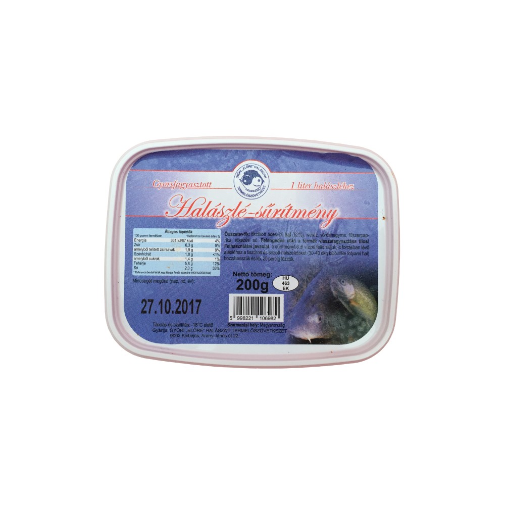 tisztított édesvízi hal 52%, ivóvíz, vöröshagyma, őrölt fűszerpaprika, étkezési só.