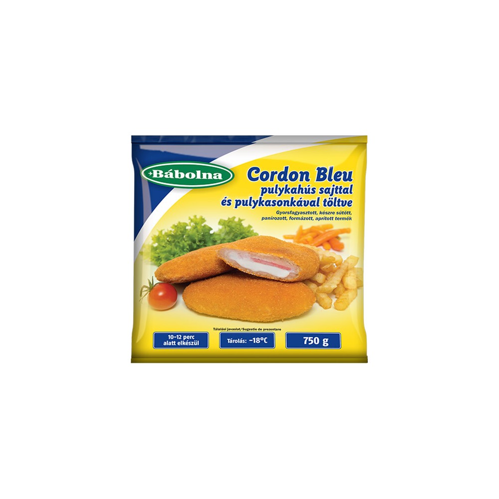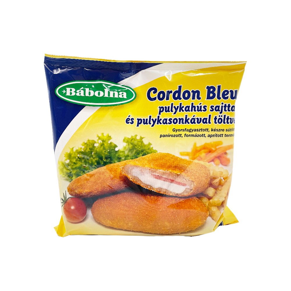 pulyka mellhús 27%, ivóvíz, panírmorzsa (búzaliszt, étkezési só, fűszerek, élesztő), búzaliszt, napraforgó étolaj, baromfi bőr, morzsa (búzaliszt, élesztő, étkezési só), pulykasonka 5% (pulykahús 55%, ivóvíz, baromfibőr, burgonyakeményítő, szójafehérje, sűrítő anyagok: E407, E412, E410, E415, emulgeálószerek: E451, E452, glükóz-szirup, antioxidáns: E316, E330, ízfokozó: E621, aromák (füstaroma), színezékek: E120, tartósítószer: E262, E250)