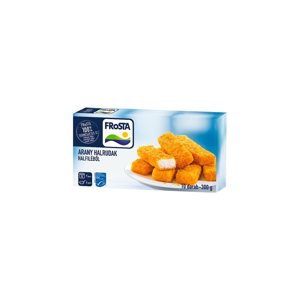 Fehér húsú halfilé 65% (A - Alaszkai tőkehal, D - Hekk; lásd a betűjelet a doboz oldalán) (MSC tanúsítvánnyal rendelkező, fenntartható halászatból, már a tengeren lefagyasztva), Búzaliszt, Napraforgó olaj (nem kémiai úton kivont), Ivóvíz, Burgonyakeményítő (nem kémiailag módosított), Étkezési só (csomósodást gátló anyag nélkül), Őrölt paprika, Kurkuma, Élesztő (friss élesztő)