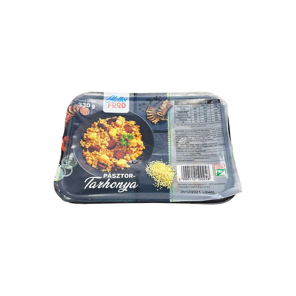 durum tarhonya 47% (durumbúzaliszt, ivóvíz), burgonya 17%, vöröshagyma 12%, lecsó 11% (paprika, paradicsom), parasztkolbász 9% (sertéshús, marhahús, szalonna, fűszerkeverék [fűszerpaprika őrlemény, szőlőcukor, őrölt feketebors, fokhagyma granulátum, paprikakivonat, őrölt fűszerkömény, csípős fűszerpaprika őrlemény, fűszerkivonatok], pácsó [étkezési só, tartósítószer (nátrium-nitrit)]), sertészsír, napraforgóolaj, fűszerpaprika, étkezési só, feketebors.