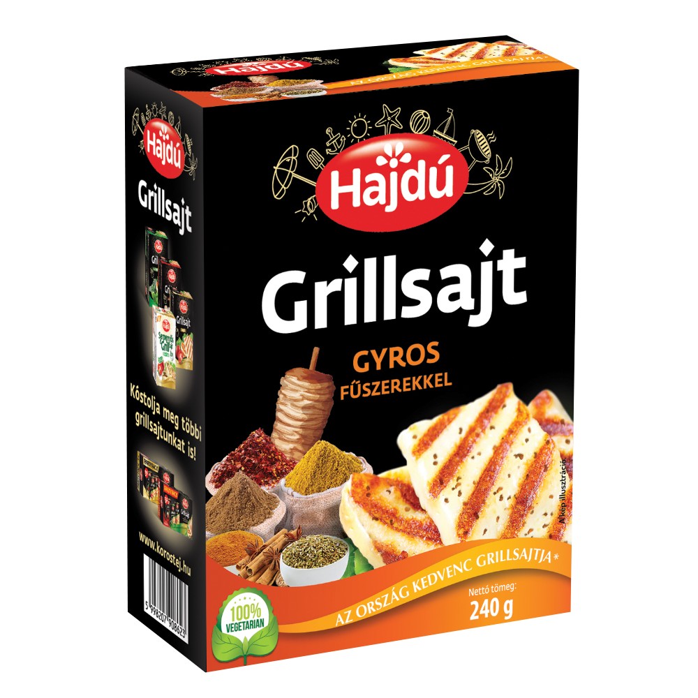 Pasztőrözött tehéntej, Étkezési só, Gyros fűszerek és fűszerkivonatok: (repce olaj, pálma olaj, feketebors, oregánó, paprika, vöröshagyma, dextróz, hidrolizált növényi fehérje), Oltóenzim, Szilárdító anyag: kalcium-klorid, Zsír a szárazanyagban legalább 45% (m/m).