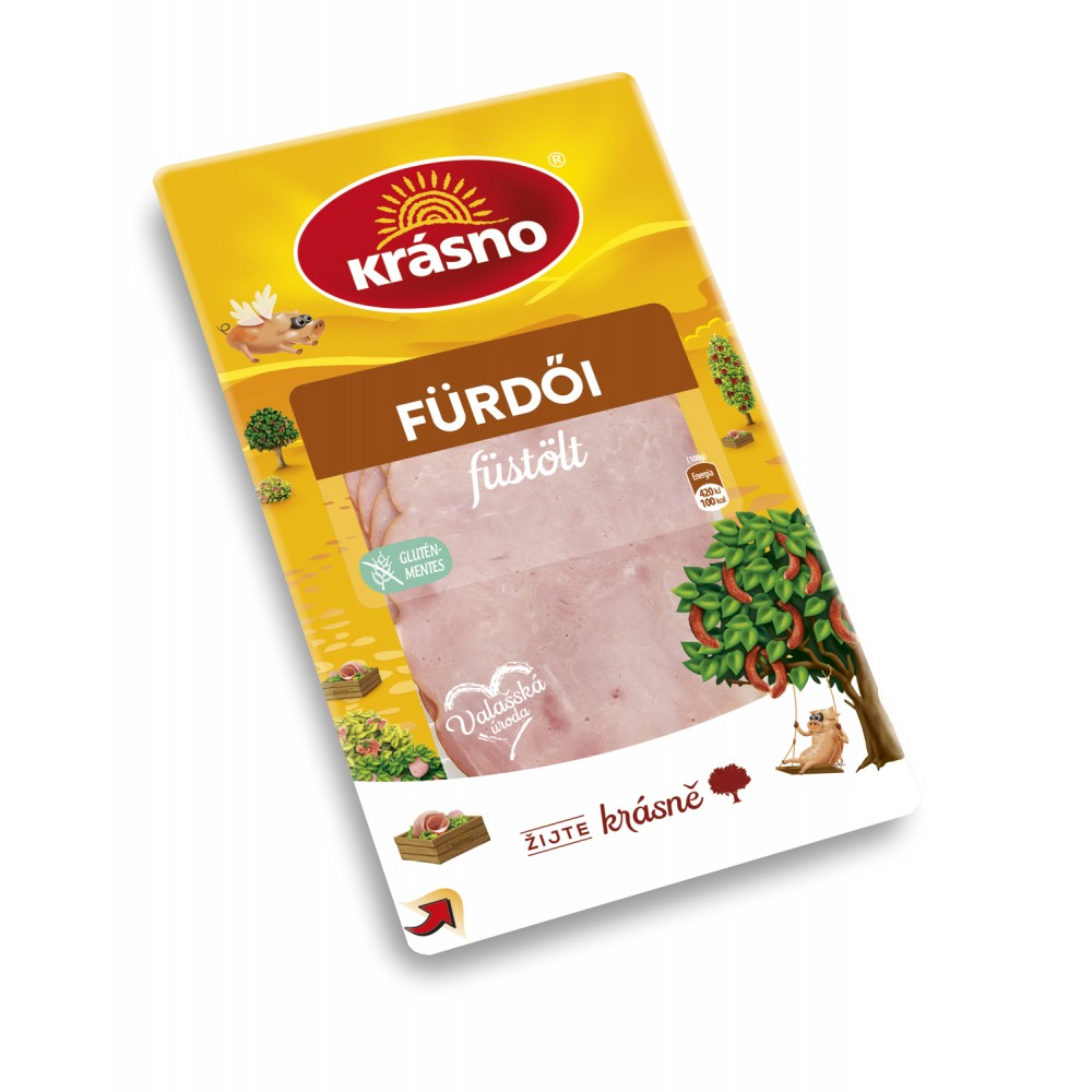 Sertéshús (65%), Víz, Jódozott konyhasó, Burgonyakeményítő, Sertéshús fehérje, Cukor, Tartósítószer - E250, Stabilizátorok - E450, E451, Sűrítőanyagok - E407a, E407, E415, Antioxidánsok - E316, E331, Füstaroma, Ízfokozó - E621, Konyhasótartalom max. 2,5%, zsírtartalom max. 5%., Gluténtartalom max. 20 mg/kg., Min. tiszta izomfehérje tartalom: 10%, minőségi osztály-standard.