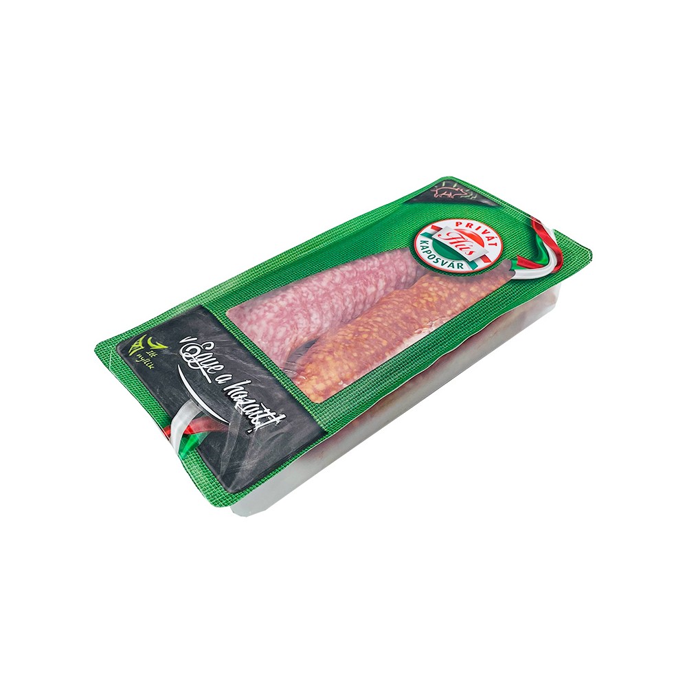 Csemege 25% (Sertéshús, szalonna, étkezési só, fűszerek, dextróz, aroma, antioxidáns(nátrium-aszkorbát), sertésfehérje, fűszerkivonatok, színezék(kárminsav), tartósítószer(nátrium-nitrit), starterkultúra, 100g késztermék 137g sertéshús felhasználásával készült), Csípős 25% (Sertéshús, étkezési só, szalonna, fűszerek, dextróz, fűszerkivonatok, antioxidáns(nátrium-aszkorbát), tartósítószer(nátrium-nitrit), starterkultúra, 100g késztermék 135g sertéshús felhasználásával készült)